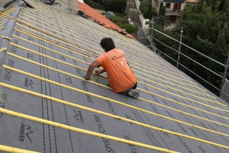 Nous assurons la pose d’écrans sous‑toiture de haute performance, adaptés à tous types de toitures en tuiles ou ardoises. La mise en place d’un écran sous‑toiture de qualité est essentielle pour garantir l’étanchéité de votre toiture, la protection de votre isolation et la durabilité de votre habitat.
